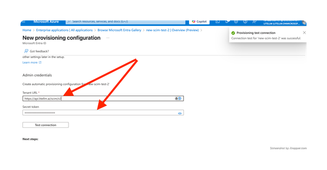 Once this is pasted in, click on Test Connection to ensure your IDP can authenticate to the LiteLLM SCIM endpoints.